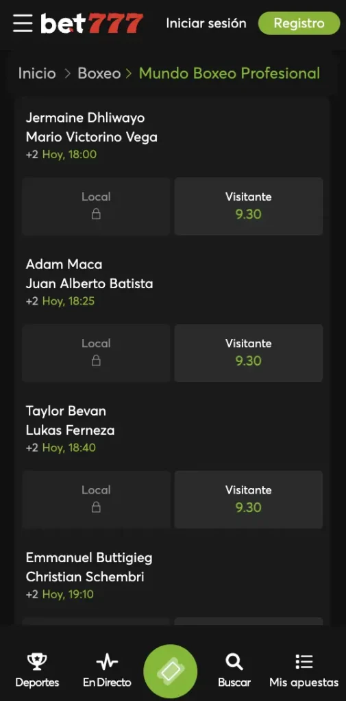Dentro de cada deporte, el jugador encontrará en Bet777 España de todo tipo de mercados, desde Ganador del Partido hasta Resultado Exacto. En cada mercado, las cuotas son las más competitivas.