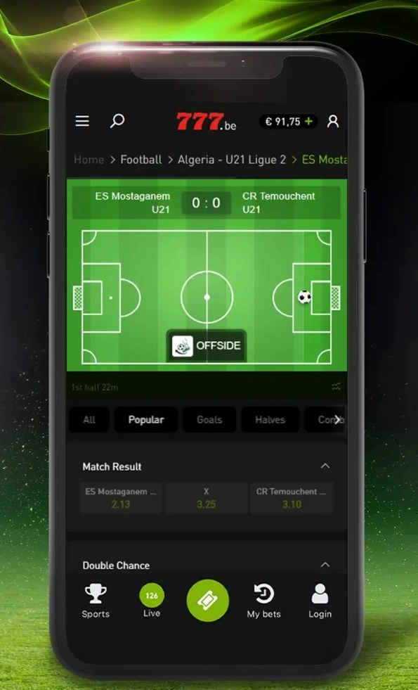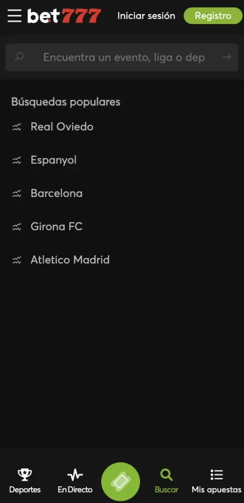 Apostar en Bet 777 a través de la aplicación es muy sencillo, y te permite una gran libertad, ya que puedes realizar tus pronósticos desde cualquier lugar. Instala la app y accede a ella con tus datos de usuario.
