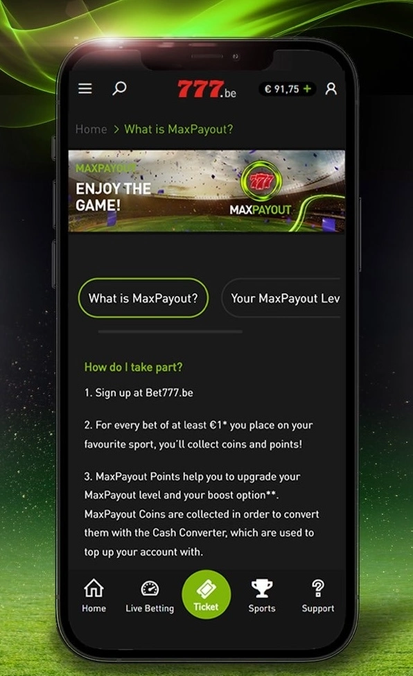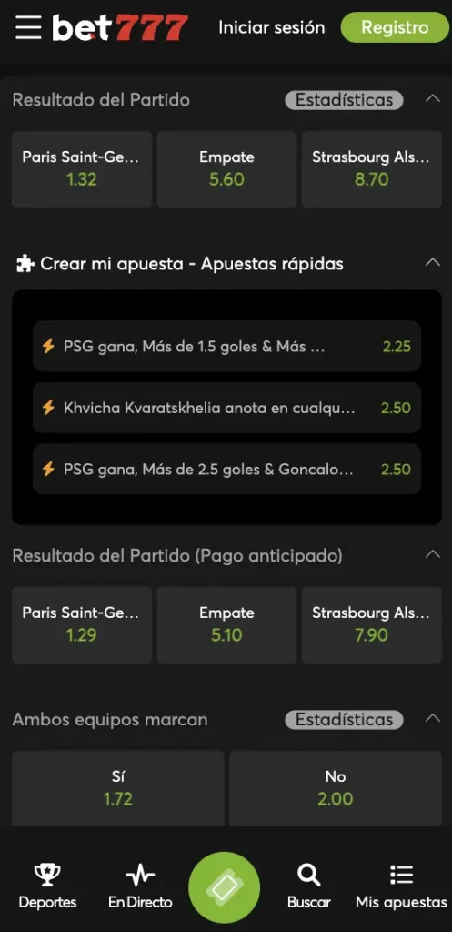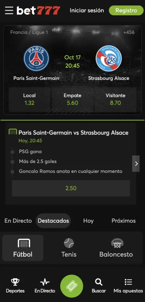 En la versión para dispositivos móviles de la Bet 777 app vas a encontrar todas las funciones completas que ofrece la plataforma: